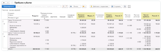 Программа не предназначена для ведения бухгалтерского и налогового учета – для этих целей можно использовать решение "1С: Бухгалтерия", где ведется учет в соответствии с РСБУ, и в которую передается необходимая информация о работе клиники, что исключает повторный ввод информации.