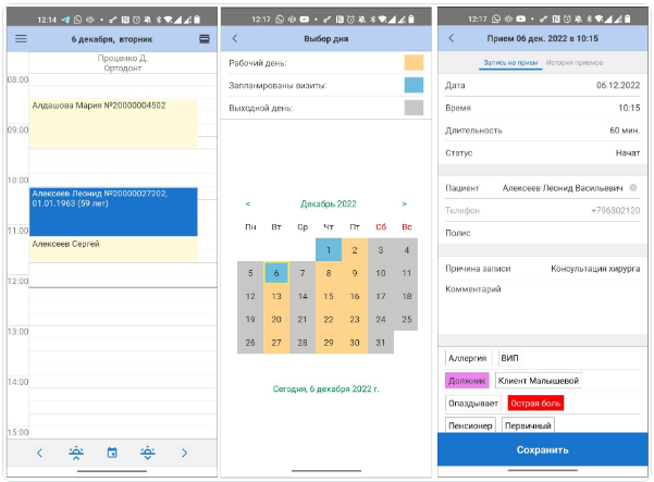 "1С: Предприятие 8" позволяет сократить затраты на автоматизацию и использовать в работе смартфон или планшет. Для врача доступен журнал его записей, график работы и история приёмов пациентов.