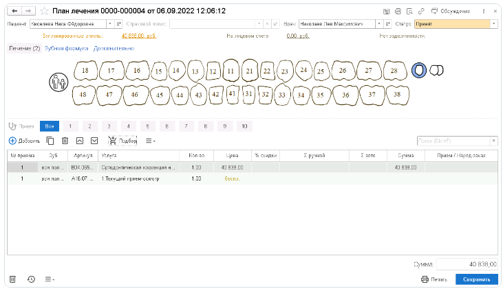 Возможность вести учет планов лечения пациентов, когда для осуществления лечения пациенту необходимо осуществить несколько визитов клинику. Программа позволяет планировать прохождение плана лечения, а также контролировать его оплату и оказание запланированных услуг.